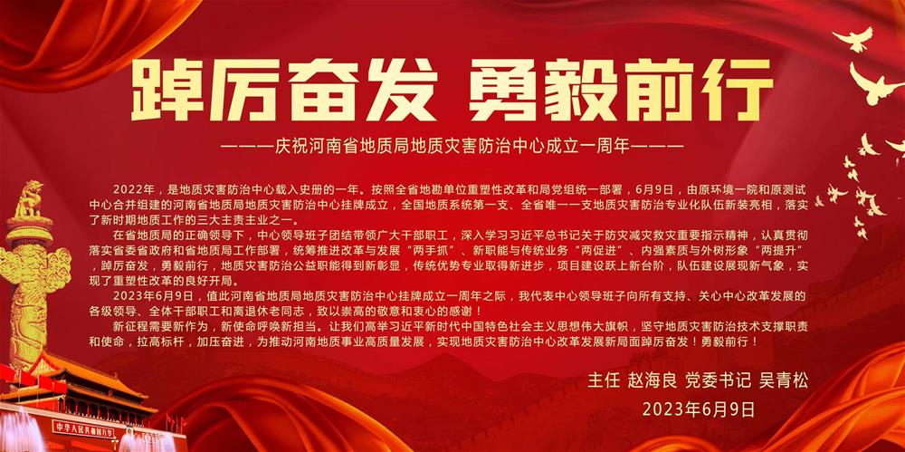 踔厲奮發 勇毅前行 慶祝河南省地質局地質災害防治中心成立一周年2023-06-08 踔厲奮發 勇毅前行 慶祝河南省地質局地質災害防治中心成立一周年2023-06-08
